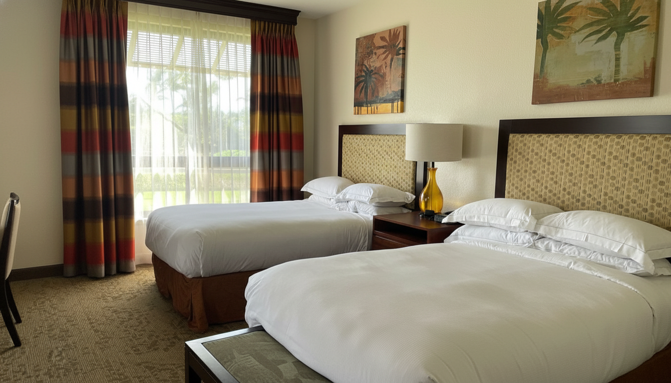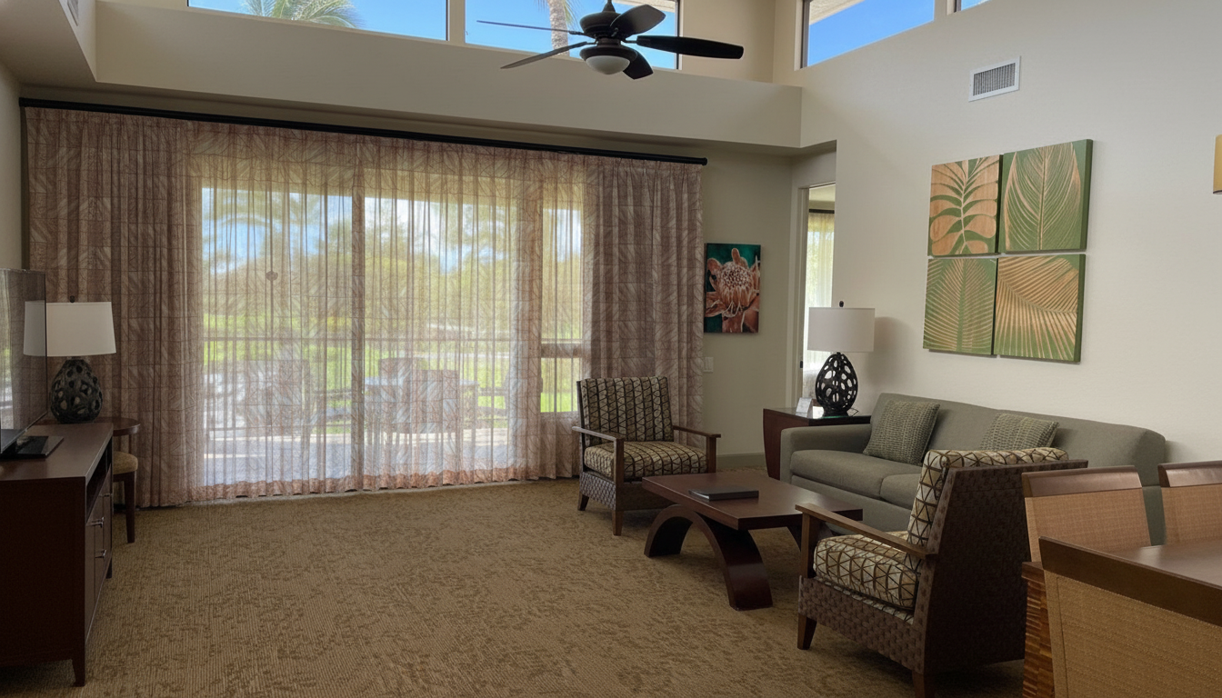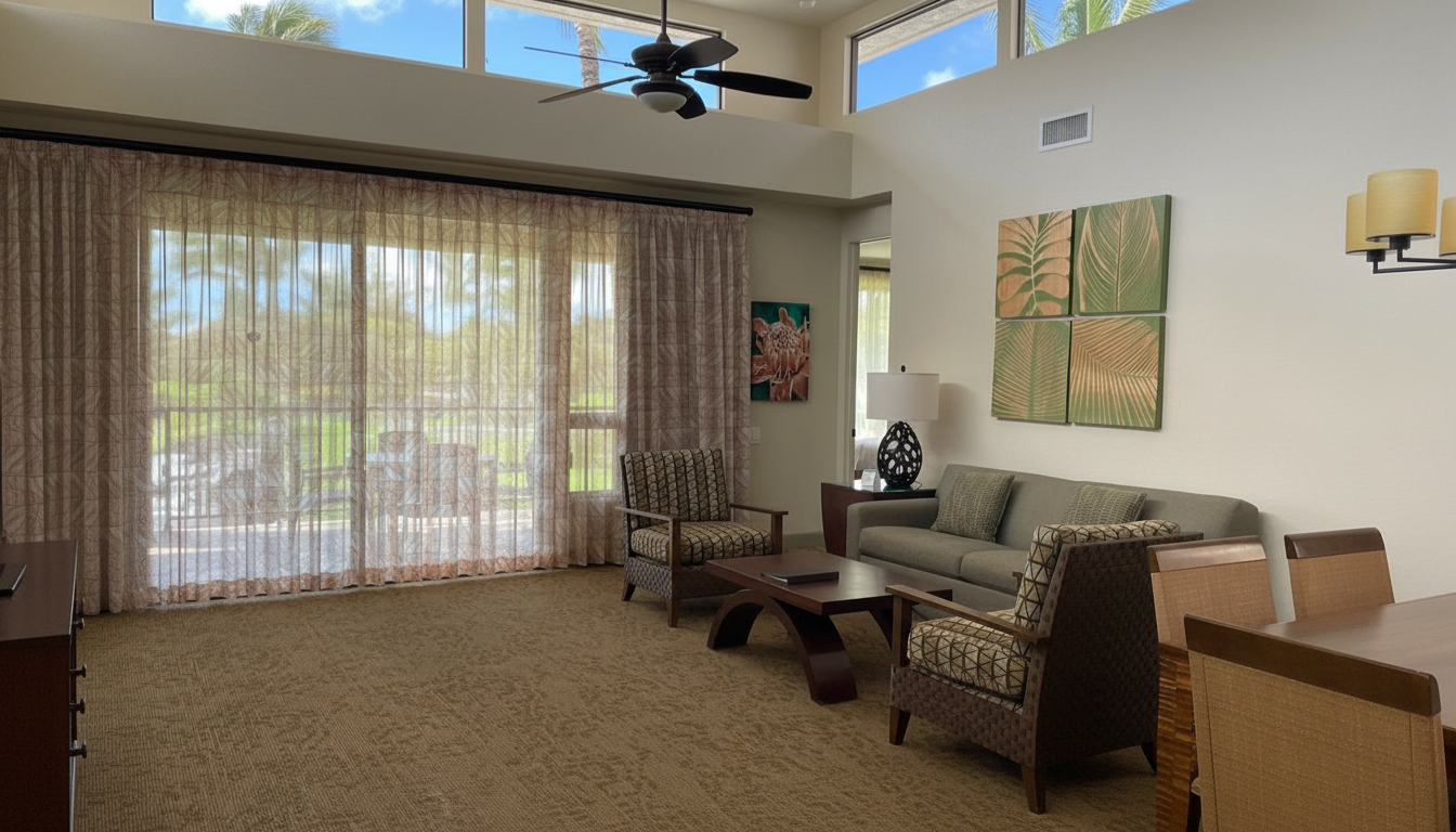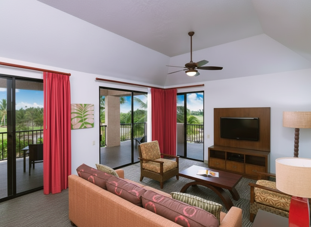 Located on Hawaii's Big Island in the heart of Waikoloa, this Hilton Grand Vacations Club property offers a luxurious island escape nestled between championship golf courses on the sun-drenched Kohala Coast. Features spacious one- and two-bedroom suites with full kitchens and private lanais overlooking manicured grounds. Guests enjoy two swimming pools, tennis courts, fitness facilities, and nearby beach access. Perfect for families seeking spacious accommodations with resort amenities in a tropical setting.