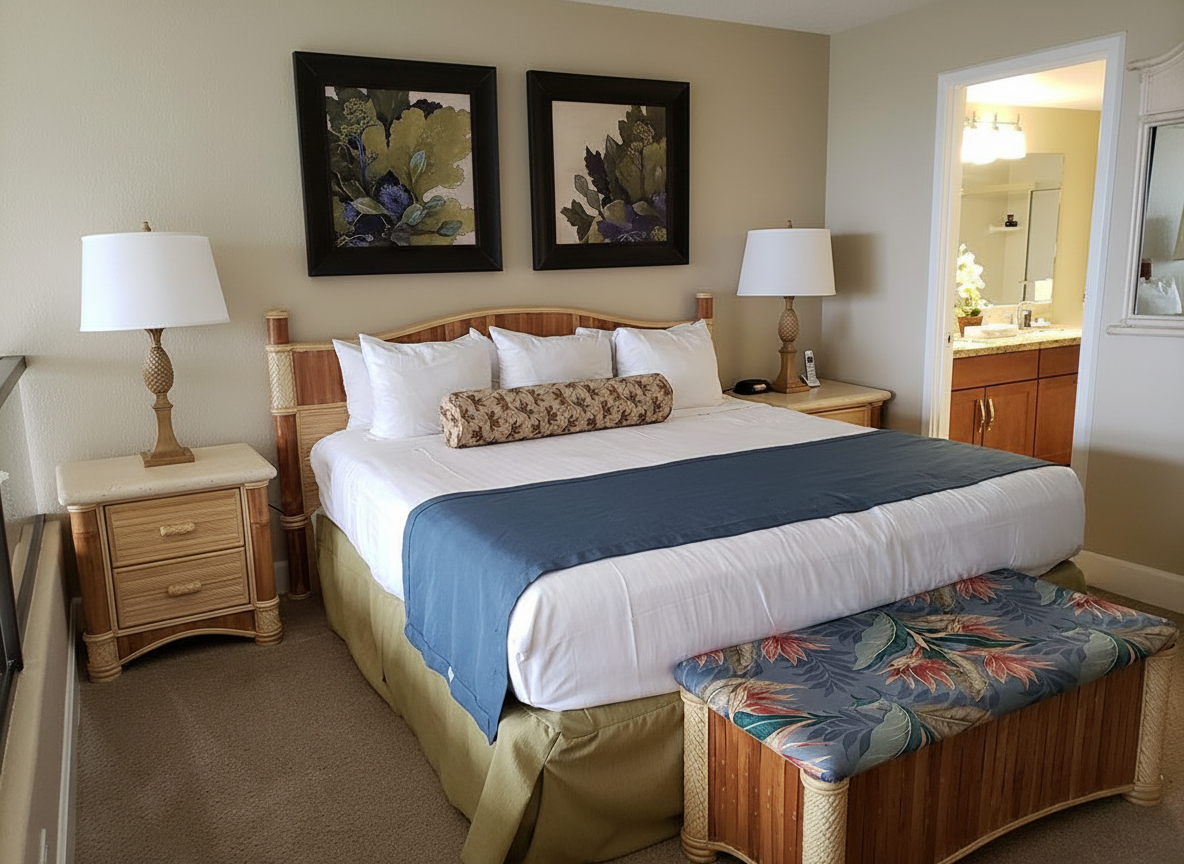 Nestled on Maui's famous west coast between Kaanapali and Kapalua, Kahana Villa Vacation Club offers spacious one- and two-bedroom condominiums with full kitchens and washer/dryers. Located directly across from scenic Kahana Beach, this tropical resort features stunning ocean views, easy beach access for snorkeling and water sports, and nearby golf courses. Guests enjoy modern amenities including an outdoor pool, hot tub, and tennis courts. The resort's convenient location provides access to fine dining, shopping, and activities throughout West Maui.