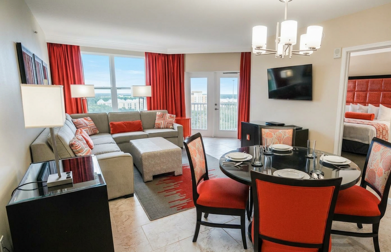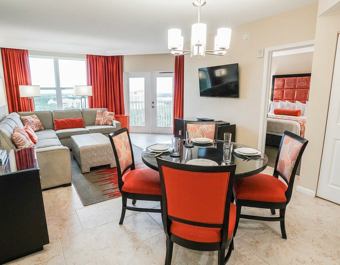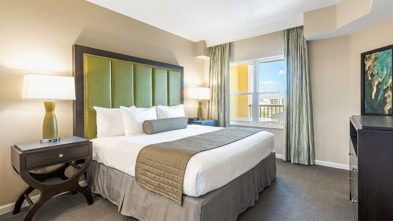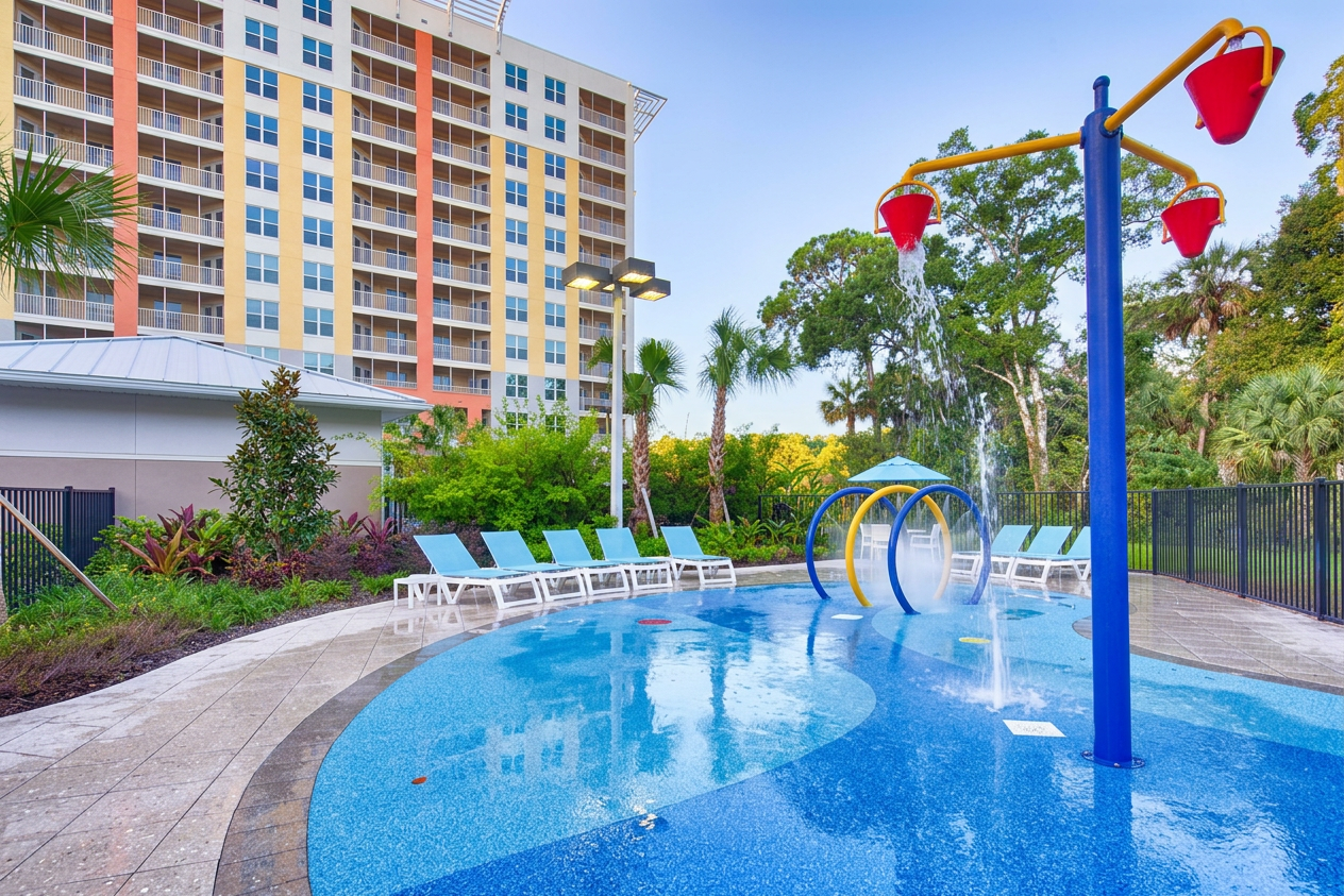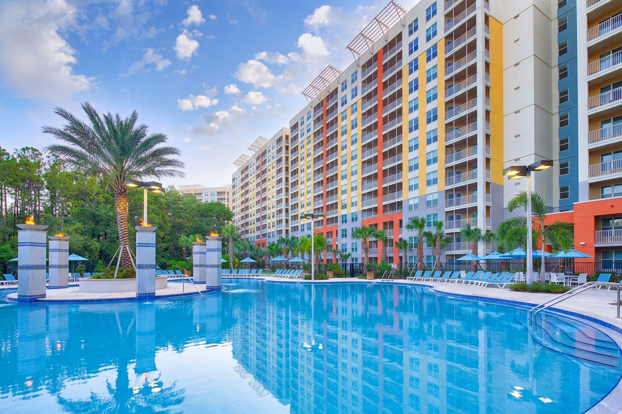 Nestled minutes from Walt Disney World and Universal Studios in Kissimmee, Vacation Village at Parkway offers spacious one- and two-bedroom suites with full kitchens. This RCI Gold Crown resort features seven heated pools, seven hot tubs, a fitness center, game room, and 22 BBQ grills across lush grounds with nature trails. Pet-friendly accommodations and complimentary theme park shuttle service make it ideal for families seeking a home-away-from-home in the heart of Central Florida's top attractions.