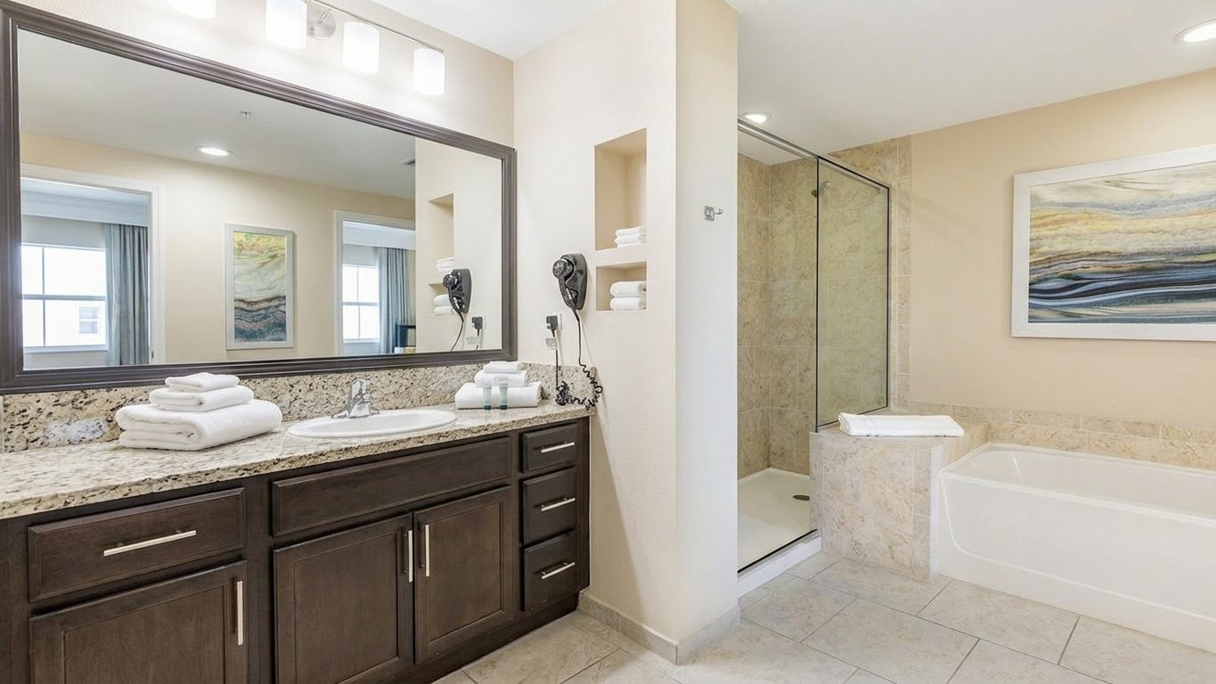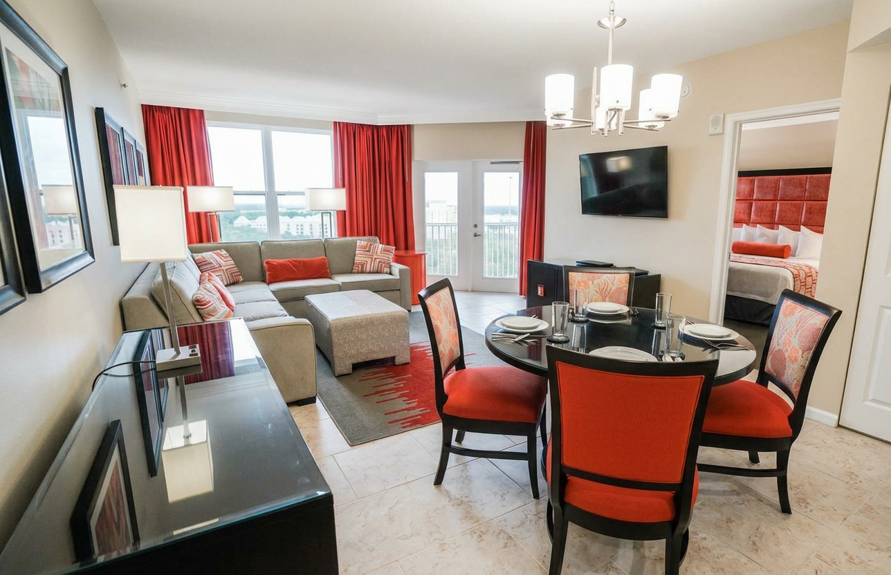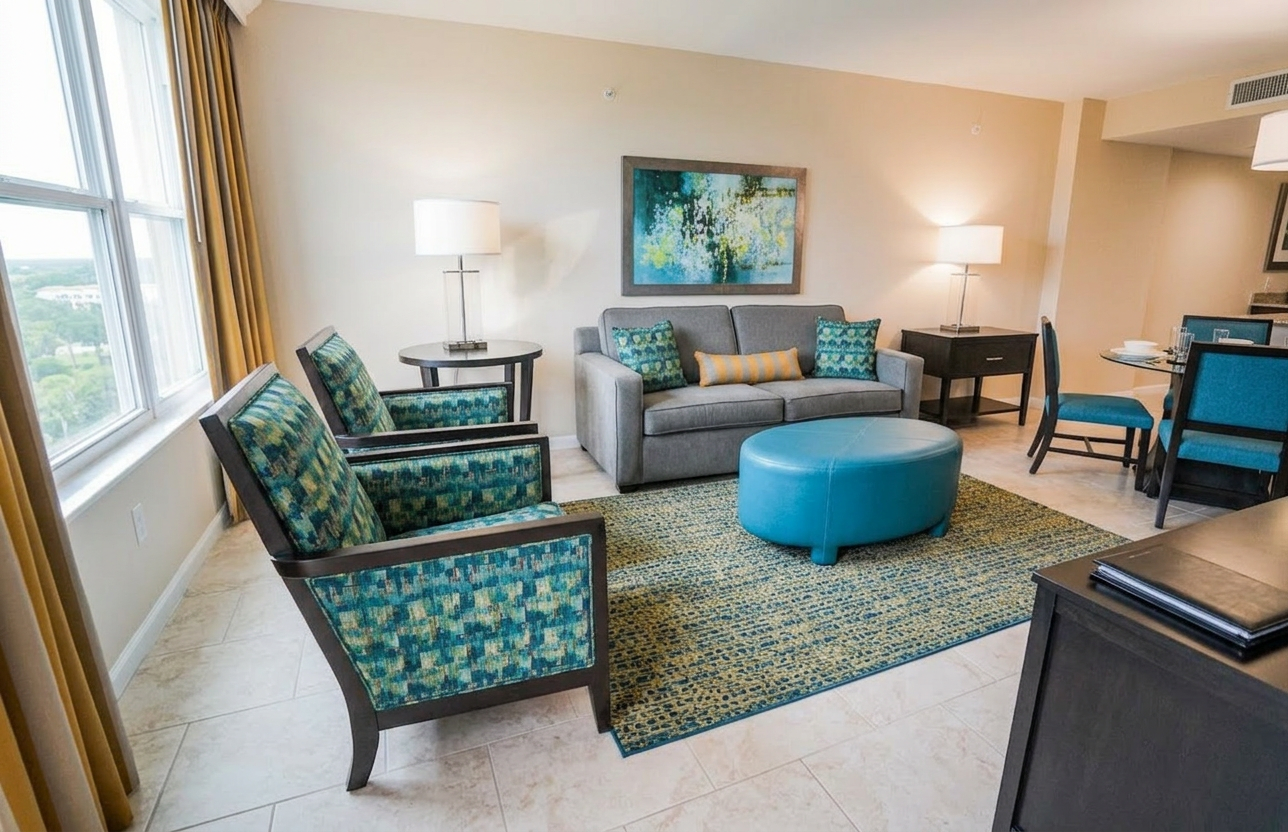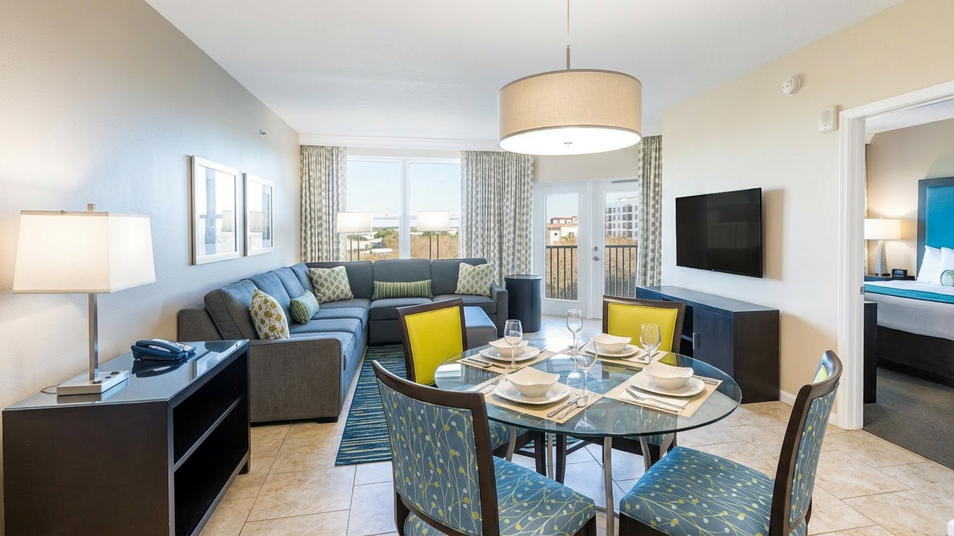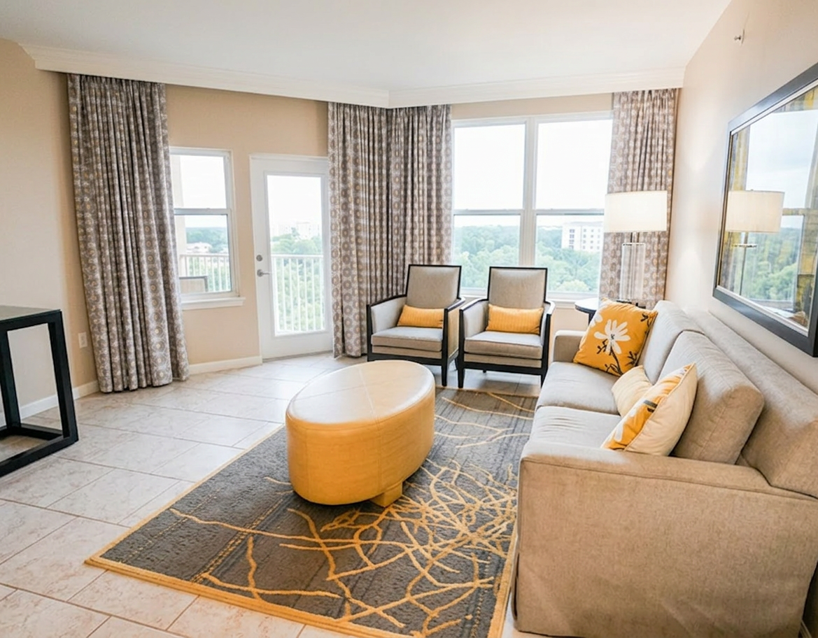Nestled minutes from Walt Disney World and Universal Studios in Kissimmee, Vacation Village at Parkway offers spacious one- and two-bedroom suites with full kitchens. This RCI Gold Crown resort features seven heated pools, seven hot tubs, a fitness center, game room, and 22 BBQ grills across lush grounds with nature trails. Pet-friendly accommodations and complimentary theme park shuttle service make it ideal for families seeking a home-away-from-home in the heart of Central Florida's top attractions.