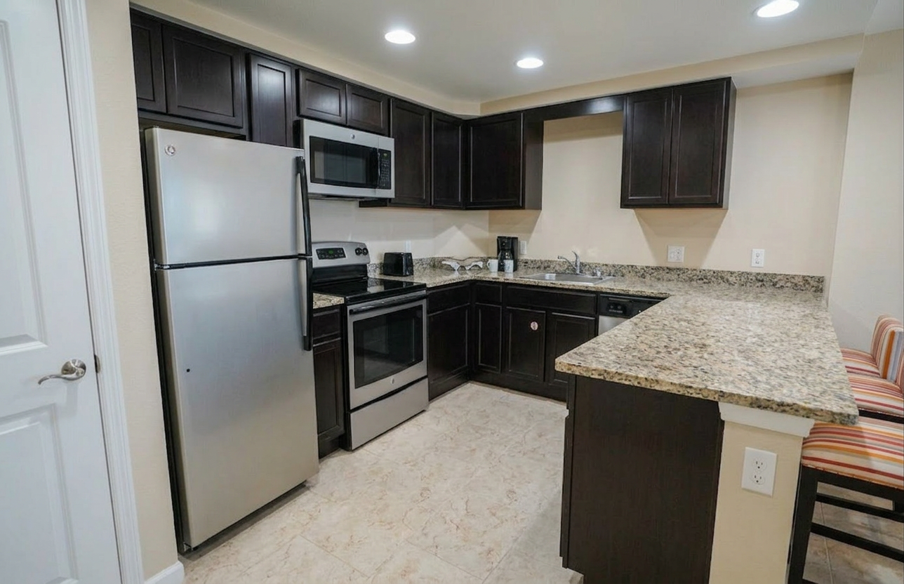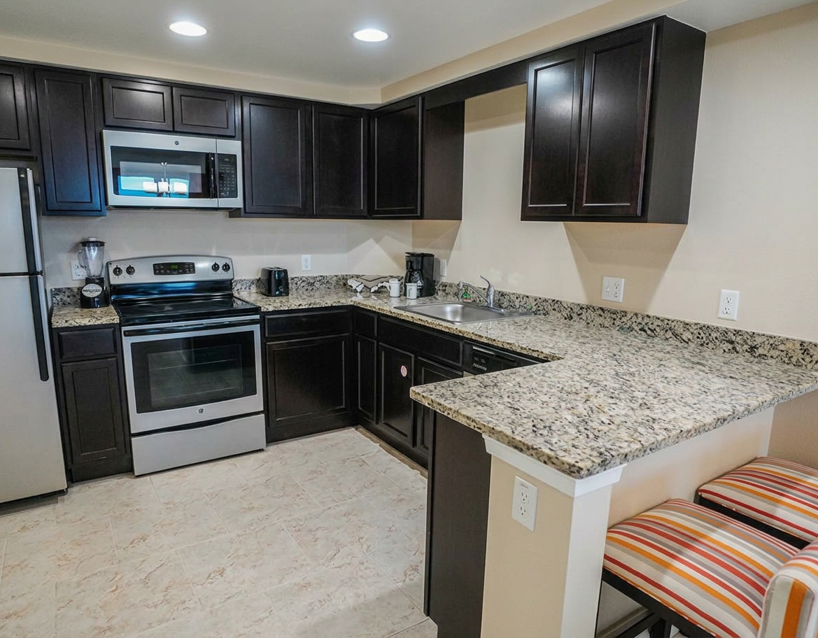 Sleeps 4 King or Queen + Queen Sleeper Sofa. A Suite: full kitchen, 850-1000 sqft. B Suite: partial kitchen, 500 sqft. C Suite: partial kitchen, 850 sqft.