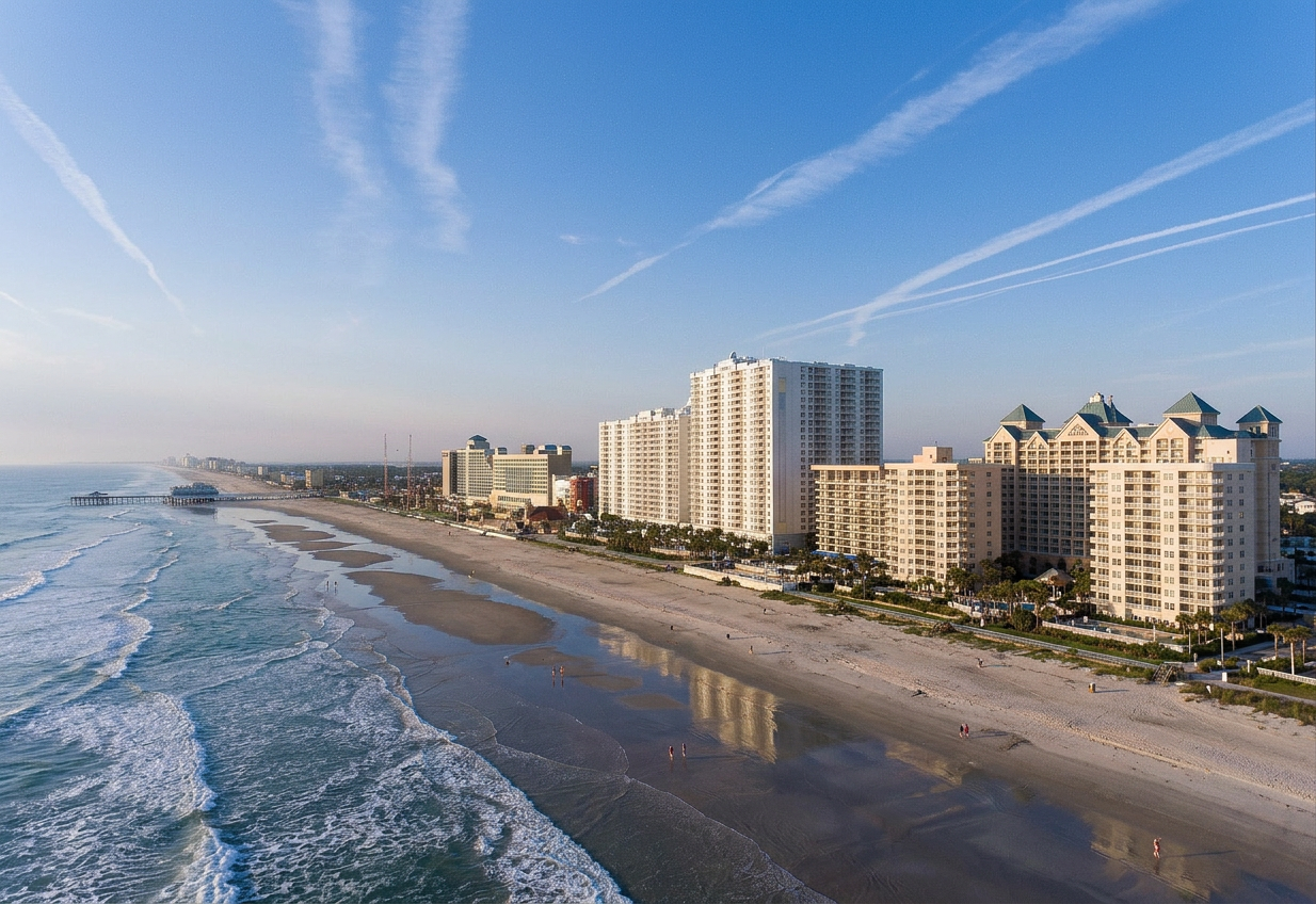 Situated along the iconic Daytona Beach, Club Wyndham Ocean Walk offers a perfect blend of beachfront relaxation and family-friendly excitement. Guests can enjoy direct beach access, resort-style pools, a lazy river, and waterslides. The spacious suites feature full kitchens, private balconies, and modern amenities, ideal for extended stays. Located just steps from the Daytona Beach Boardwalk and a short drive from Daytona International Speedway, this resort is the perfect base for exploring the best of Florida's Atlantic Coast.